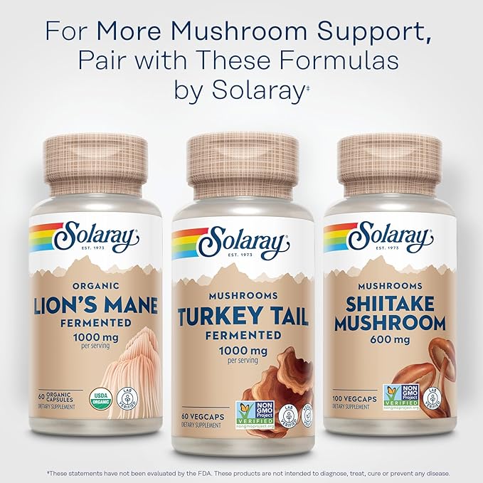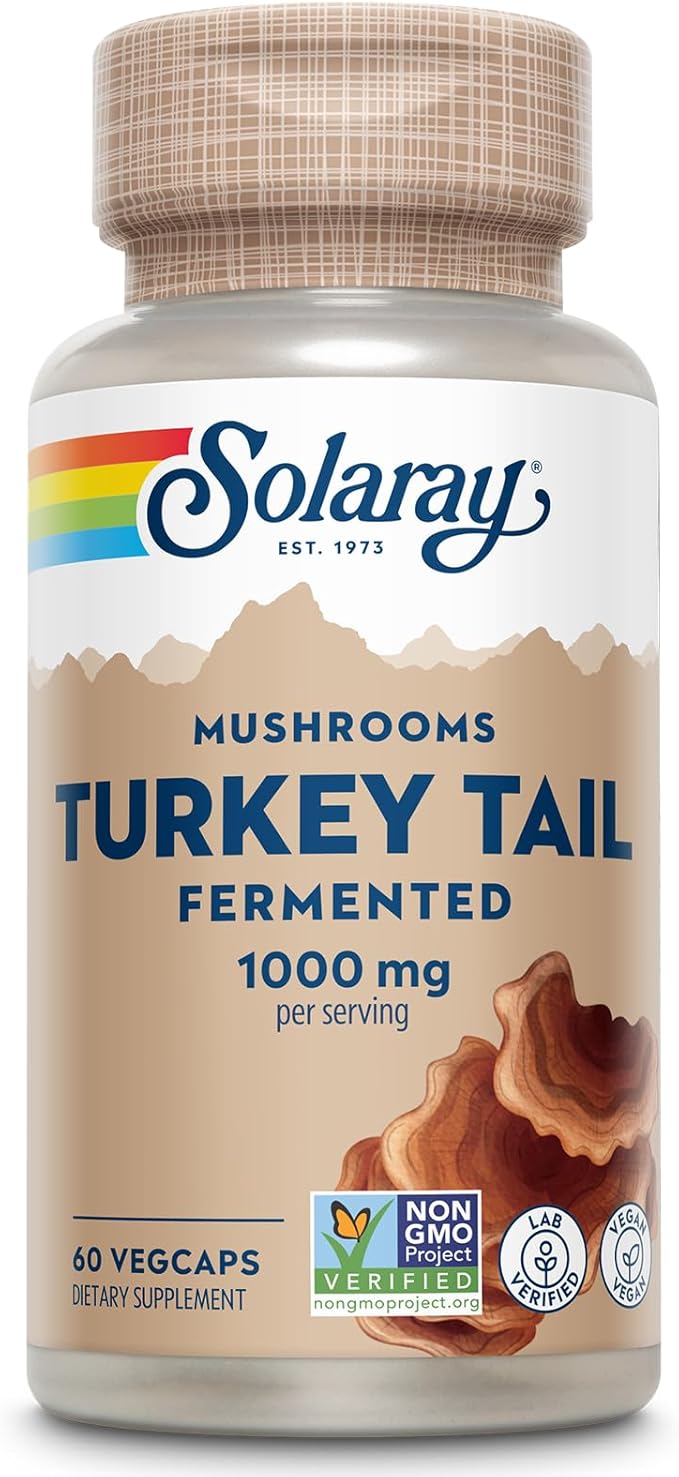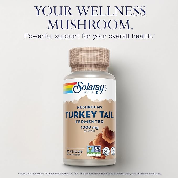 SOLARAY Fermented Turkey Tail Mushroom Supplement 1000mg - Overall Wellness Support - Turkey Tail Mushroom Capsules with Organic Mushrooms - Vegan, Non-GMO, Lab Verified, 60-Day Guarantee, 30 Servings