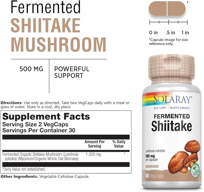 SOLARAY Fermented Shiitake Mushroom 500mg | Healthy Immune, Liver & Digestive Function Support | Non-GMO & Vegan | 60 VegCaps