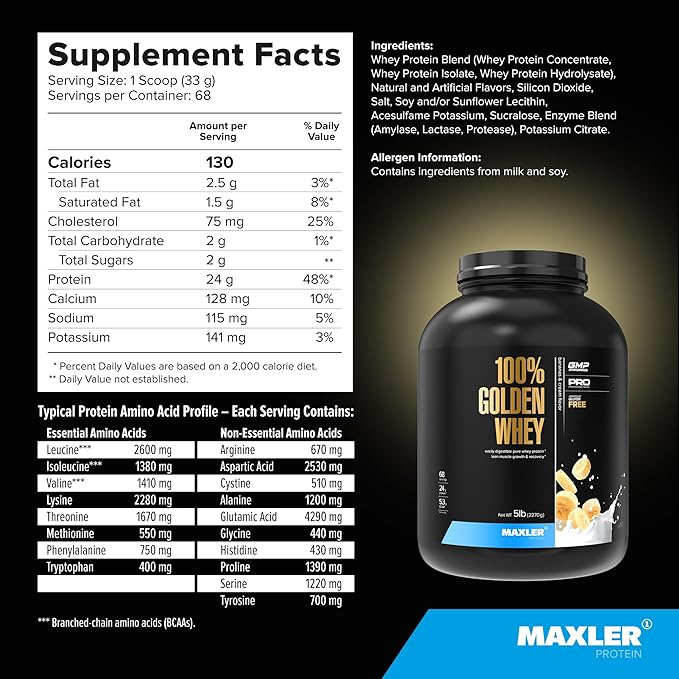- Made in USA. Maxler 100% Golden Whey protein powder banana cream flavor is designed and manufactured in compliance with GMP Standards