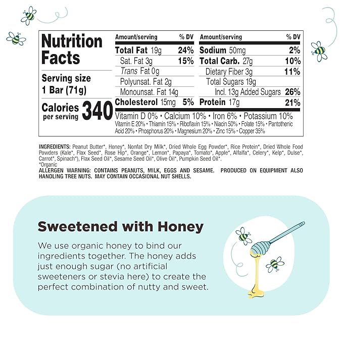 - SUPERFOOD: Superfoods like fruits, vegetables, seeds & oils are found in every bar to provide a convenient source of vitamins & minerals. Plus, we use whole food protein & never rely on whey or soy.