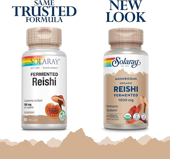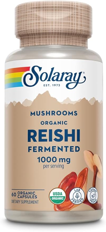 SOLARAY Fermented Reishi Mushroom 500mg | Healthy Immune, Heart & Brain Function Support | Energy & Mood Supplement | 60 VegCaps