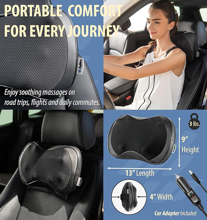 - Ergonomic & Versatile: Fits your body's contours including arms, hands, legs and even feet, to help relieve plantar fasciitis while the Velcro straps secure the massager to an office chair or car headrests (car adapter included)