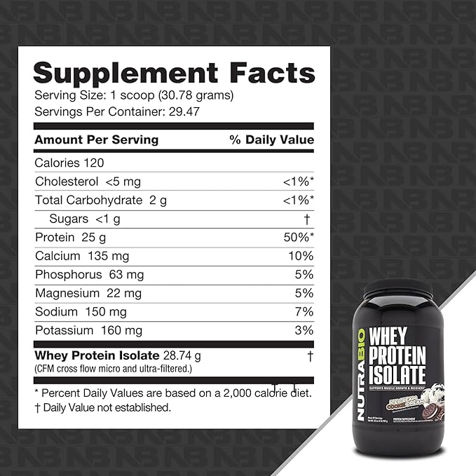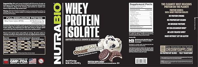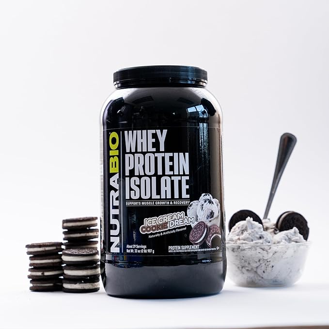 NutraBio 100% Whey Protein Isolate Protein Powder, 25g Protein with Complete Amino Acid Profile, Non-GMO, Soy & Gluten Free, Low Carb, Low Calorie Whey Protein Powder, Ice Cream Cookie Dream, 2 Lbs