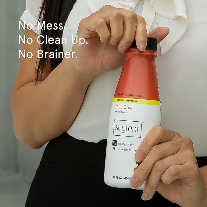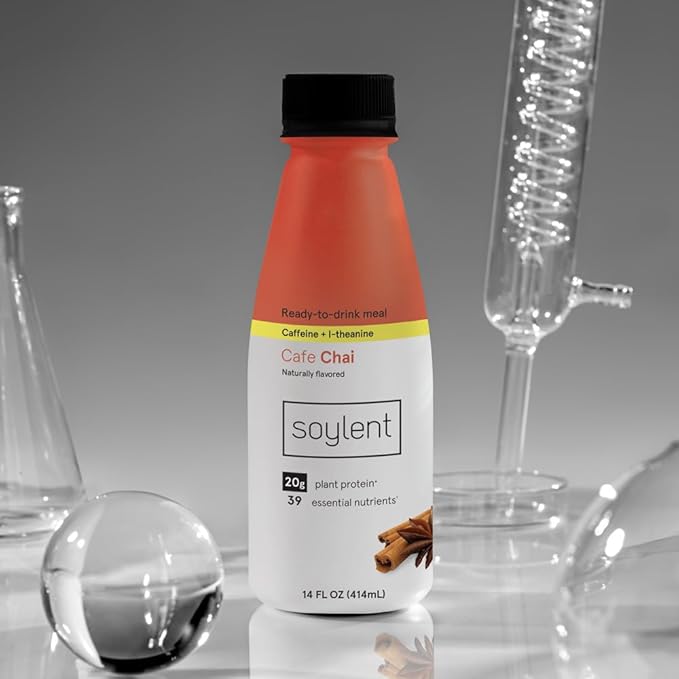 Soylent Complete Nutrition Gluten-Free Vegan Protein Meal Replacement Shake, Cafe Chai, 14 Oz, 12 Pack