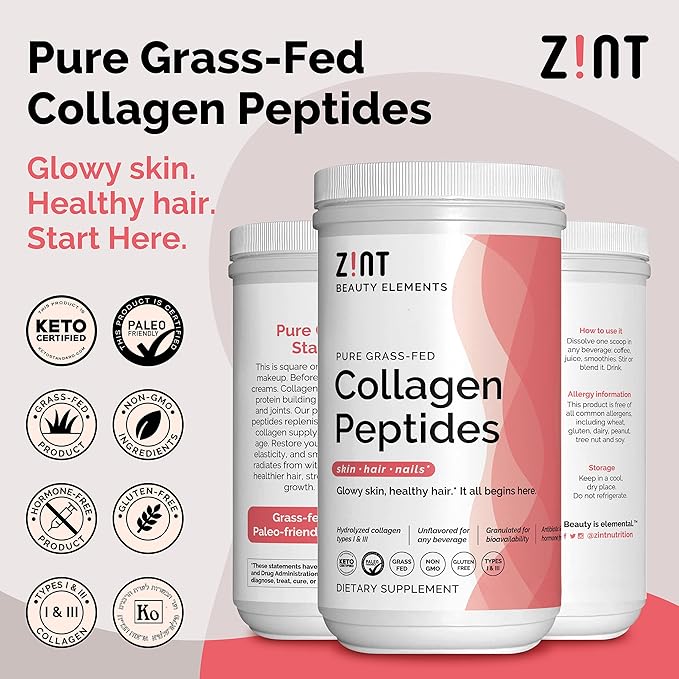 - ZINT BEAUTY ELEMENTS: With collagen types I & III, Zint's collagen hydrolysate restores your body's most basic building block for skin moisture and smoothness, reducing wrinkles and sagging for a naturally glowy complexion.*