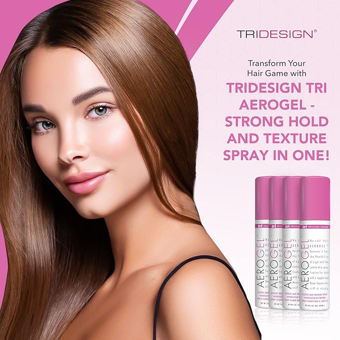 - TRAVEL-FRIENDLY SIZE: Our TRI Design Aerogel's 3 oz hairspray is the perfect travel companion. Compact and convenient, it fits easily into your bag or carry-on, ensuring you can maintain your sleek style on the go without any hassle.