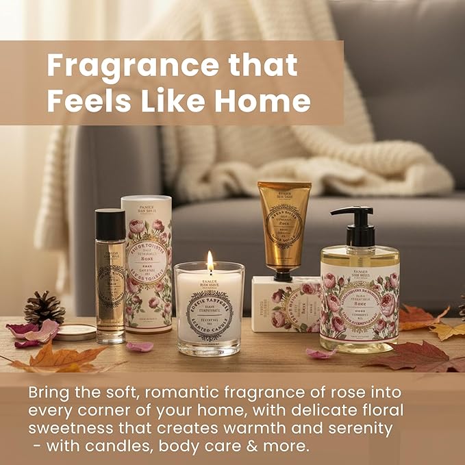 - πΉ ROSE SCENTED CANDLE β This floral candle captures the soft, romantic aroma of fresh roses, with a delicate yet rich floral scent that feels warm and enveloping. Its gentle rose fragrance is perfect for creating a cozy, serene ambiance in any room.