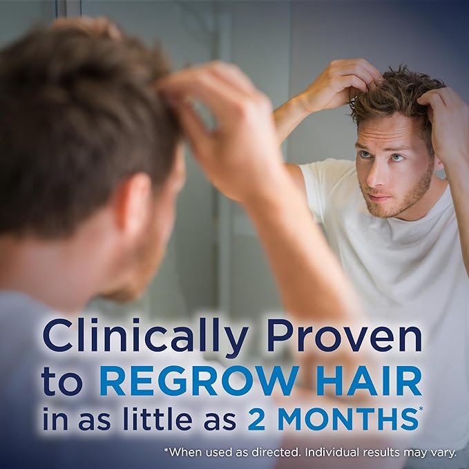 - CLINICALLY PROVEN to help regrow hair on the top of the scalp; not for use by women