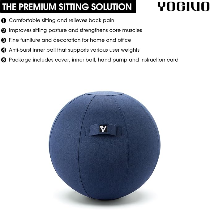 - COMFORTABLE SITTING: Our ball chair is comfortable to sit on and helps you stay focused while relieving your lower back pain. Whether you work at office, home, dorm or spend time with your family, the ergonomic sitting ball is a healthy alternative to standard desk chair that will help you stay in a good mood.