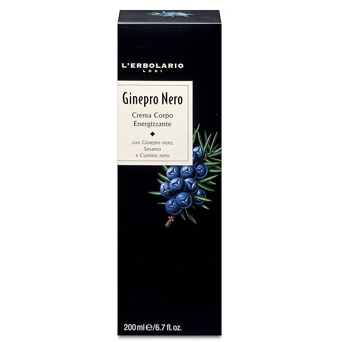 L’Erbolario Energizing Body Cream – Moisturizing Body Butter – Replenishing and Nourishing Skin Care with Citrus, Woody Scent - Black Juniper – 6.7 oz
