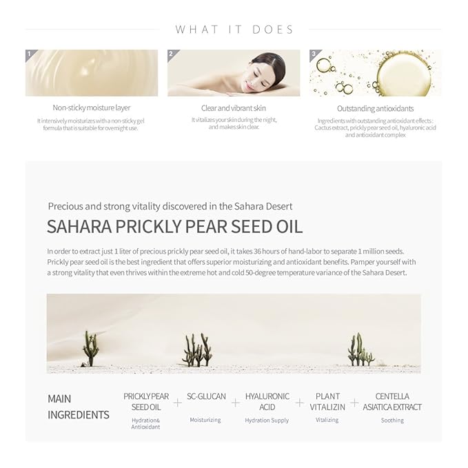 - Powered by cactus (prickly pear) extract and cica, this overnight face mask helps calm visible dryness and supports the skin barrier so skin feels cushioned, supple, and comfortable.