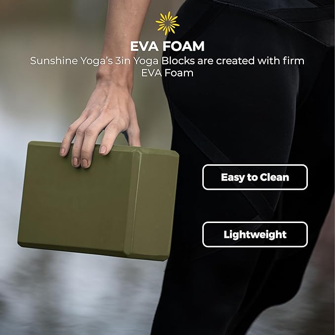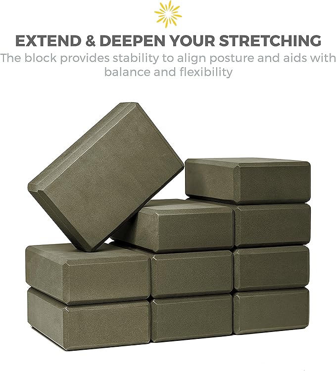 Sunshine Yoga 3" Yoga Block, 10 Pack Bulk EVA Foam Yoga Blocks, Firm and Supportive Yoga Brick, Balance Foam for Stretching, Pilates, and Workout, 3" x 6" x 9"