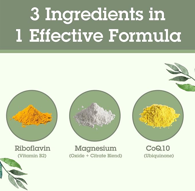 - POWERFUL NUTRITIONAL SUPPORT – Reclaim your life with our easy to swallow pills delivering the most effective daily dose of magnesium oxide and citrate plus riboflavin (vitamin B2) and CoQ10 to those who suffer.*