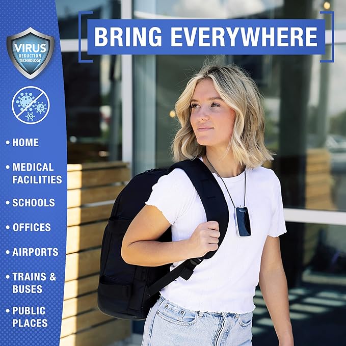 - TAKE IT ON THE GO: The AirTamer A310PMB is the perfect travel accessory for those who love to explore without exposure to unsanitary air; Our A310PMB model includes a proprietary conductive lanyard which is adjustable and features a break-away connector for extra safety; Wear it around your neck and have a sphere of breathable clean air anywhere you go.