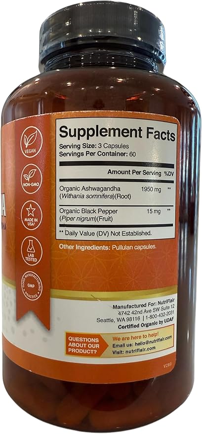 - Enhanced Absorption with Organic Black Pepper: Contains 15mg of organic black pepper per serving to enhance the absorption and effectiveness of Ashwagandha, ensuring you get the most out of each capsule.