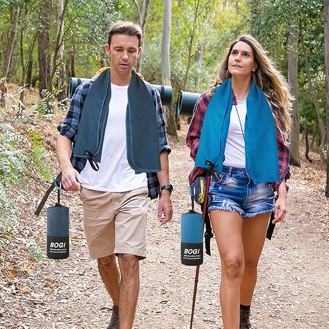 - Microfiber & Friendly to Skin: BOGI microfiber travel towel is made of high quality microfiber, which is smooth and compact, more soft, friendly to skin, no faded. BOGI quick dry towel can be also used as a sports towel, travel towel, yoga towel or as a mat for beach, bath, pool, swimming, water park, mountaineering, fitness, camping, hiking, picnic, etc. The camping towel can also be a sun shade and a cape to protect your skin against the sun. Very useful for all the year round.