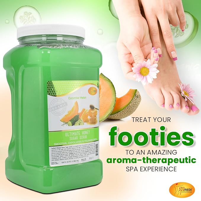 SPA REDI - Sugar Body Scrub, Honey, Cucumber Melon, 128 Oz, Exfoliating, Moisturizing, Hydrating and Nourishing, Glow, Polish, Smooth and Fresh Skin - Body Exfoliator