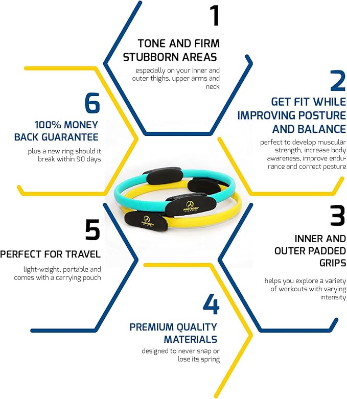 - GET FIT AND STRONG: Essential to your Pilates equipment for home workouts. This Pilates ring for women will improve your muscle tone and fitness when you practice regularly, at home, office or when traveling.
