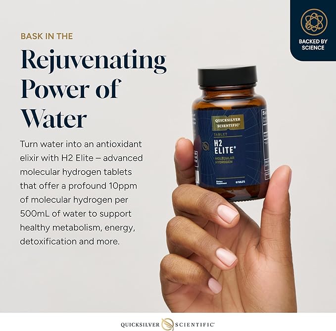 Quicksilver Scientific H2 Elite - Molecular Hydrogen for Energy + Metabolism Support, Water Tablets Perfect for Open Containers - Magnesium Malate Drink Additive (60 Molecular Hydrogen Tablets)