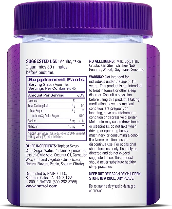- #1 DRUG FREE SLEEP AID SUPPLEMENT BRAND IN AMERICA(2): Natrol melatonin gummies 10mg from the leading drug-free sleep aid supplement brand help manage sleep and wake cycles for a better nights rest (1)