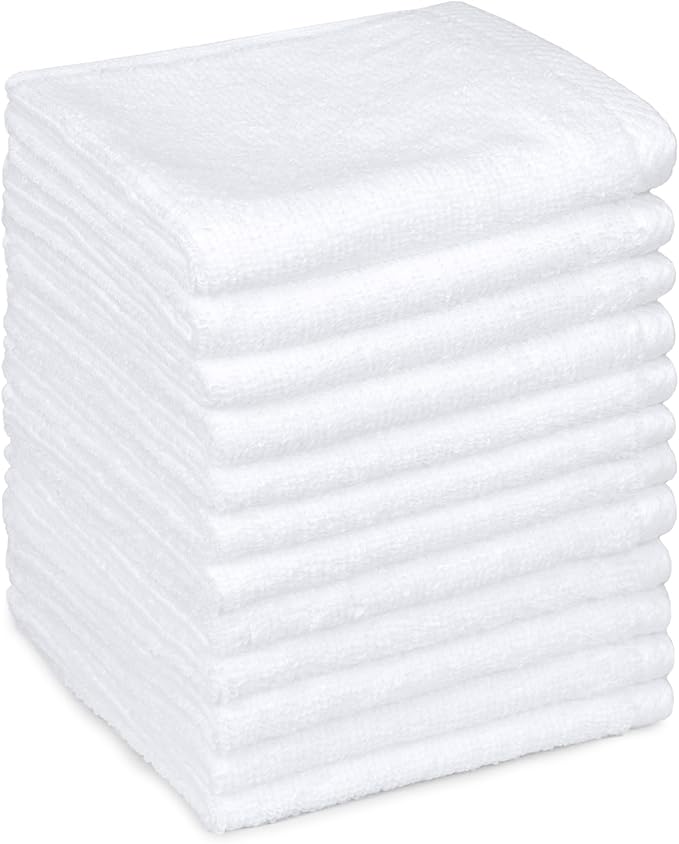 Amazon Basics Cotton Washcloths, Quick-Dry, 12" x 12", 12-Pack, White