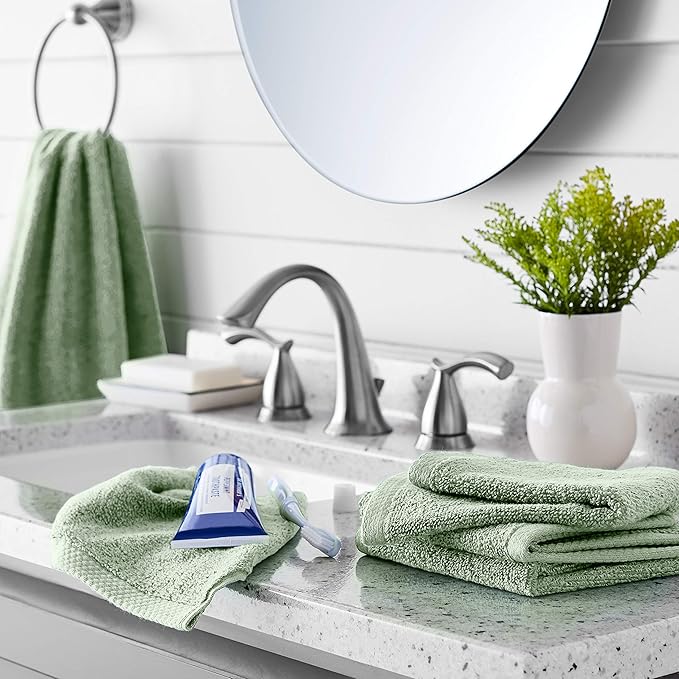 Amazon Basics Cotton Washcloths, Quick-Dry, 12" x 12", 12-Pack, Seafoam Green