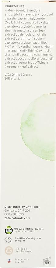 Zatik Naturals - Clarity Cleanser - with Coconut Milk and Matcha- USDA Organic, for Dry Skin, Vegan Non-GMO, Free of Gluten, Soy and Alcohol, pH Balanced, Biodegradable, 3.4 fl oz (100 mL)