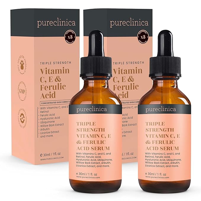 Triple Strength Vitamin C, E & Ferulic Acid Serum (w/Retinol & double weight Hyaluronic Acid) – 30ml / 1 fl oz (2 bottles)
