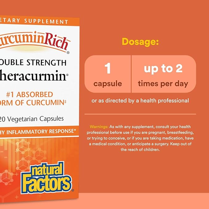 Natural Factors CurcuminRich Double Strength Theracurmin, 60 mg, Formulated for Superior Absorption, 120 Vegetarian Capsules
