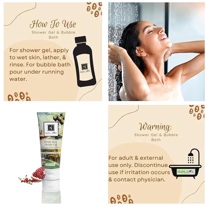 Nabila K Nomad Spice Shower Gel Refreshing Body Wash with Pomegranate & Thyme, 6.7 oz - Naturally Derived, Sulfate-Free, Paraben-Free - Made in the USA