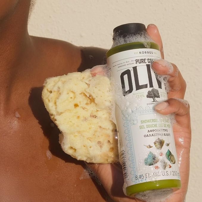 KORRES Olive Oil Shower Gel for Dry Skin, Moisturizing Body Wash Cleanser Made with Pure Greek Olive Oil, Hydrating and Nourishing Bath Soap for Smooth, Supple Skin, Sea Salt Scented, 8.45 fl oz