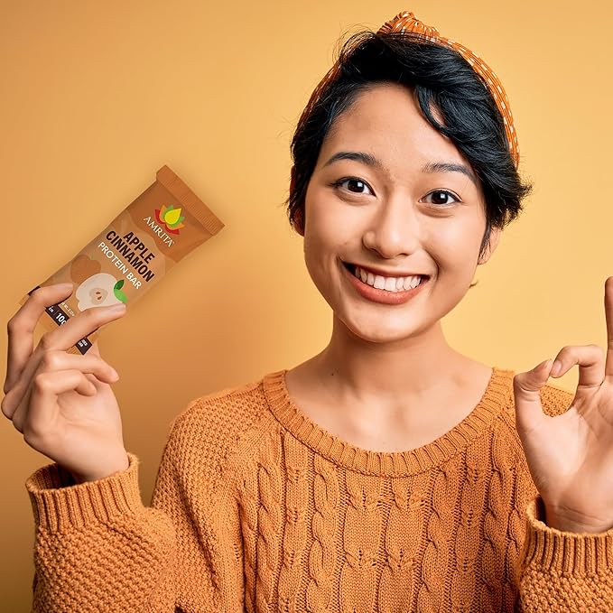 Amrita Nut Free Apple Cinnamon Vegan Protein Bars (12 Count) | 11g Plant-Based Protein Bar | Peanut Free, Gluten Free, and Dairy Free | Low Sugar, High Fiber, Healthy School-Safe Snacks