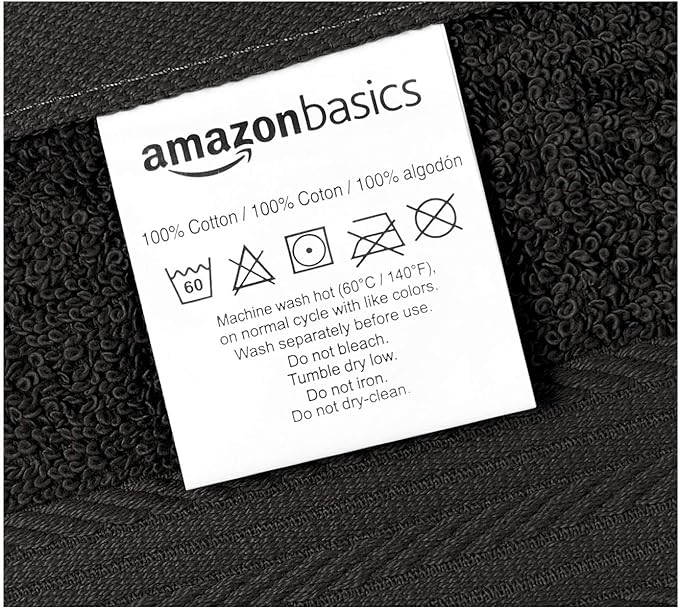 Amazon Basics Cotton Washcloths for Face, Soft, Absorbent, 12-Pack, Black, 12 Inch x 12 Inch
