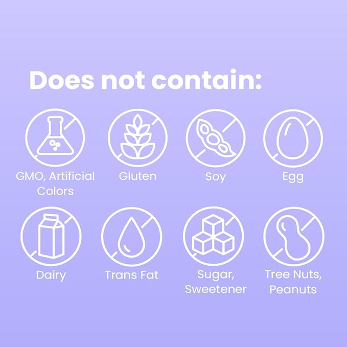 - THIS SUPPLEMENT EXCLUDES: GMO, Artificial Colors, Gluten, Soy, Egg, Dairy, Trans Fat, Sugar, Sweeteners, Tree Nuts, and Peanuts.