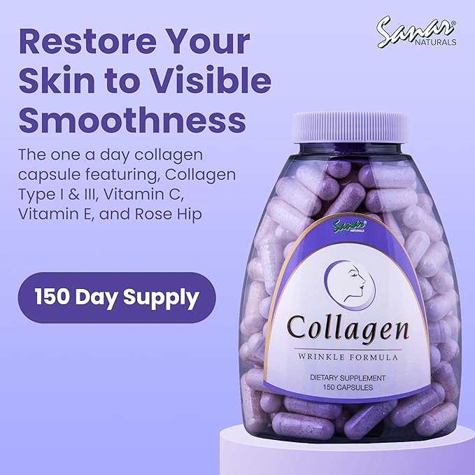 Sanar Naturals Collagen Pills with Vitamin C, E - Supports Hair, Nail, Skin, Joint & Bone Health - Hydrolyzed Collagen for Women & Men Supplement - Grass Fed, Non-GMO, 150 Capsules