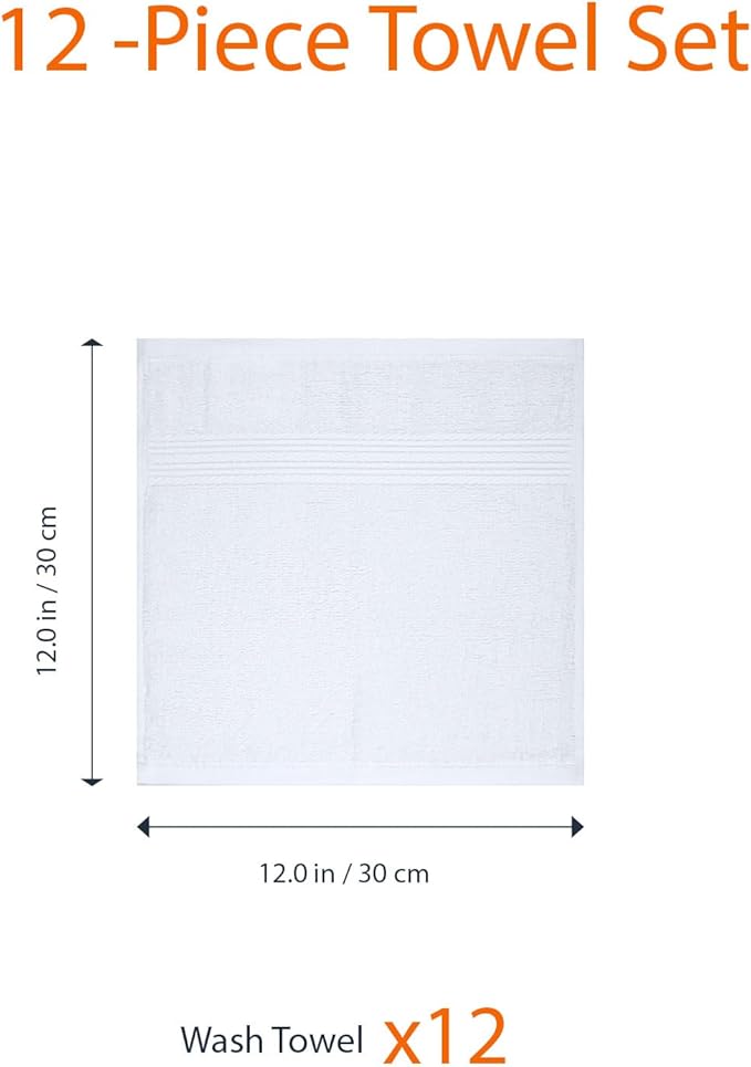 Amazon Basics Cotton Washcloths for Bathroom, Soft and Highly Absorbent, 12 in x 12 in, White, 12-Pack
