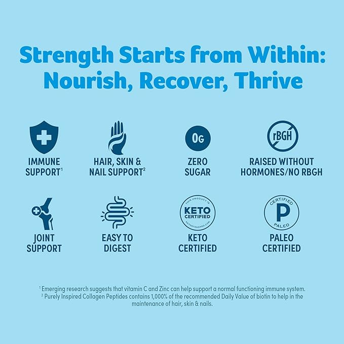 - Support Your Daily Glow: Purely Inspired Collagen Peptides delivers 20g of collagen, 18g of protein, and 0g of sugar in an easy-to-mix, unflavored formula—plus 300mcg of Biotin to support healthy hair, skin, and nails. 20 servings per container.