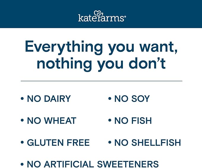 - INGREDIENTS: Kate Farms organic, plant-based formulas are made without artificial sweeteners or common allergens.