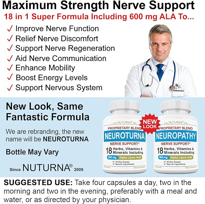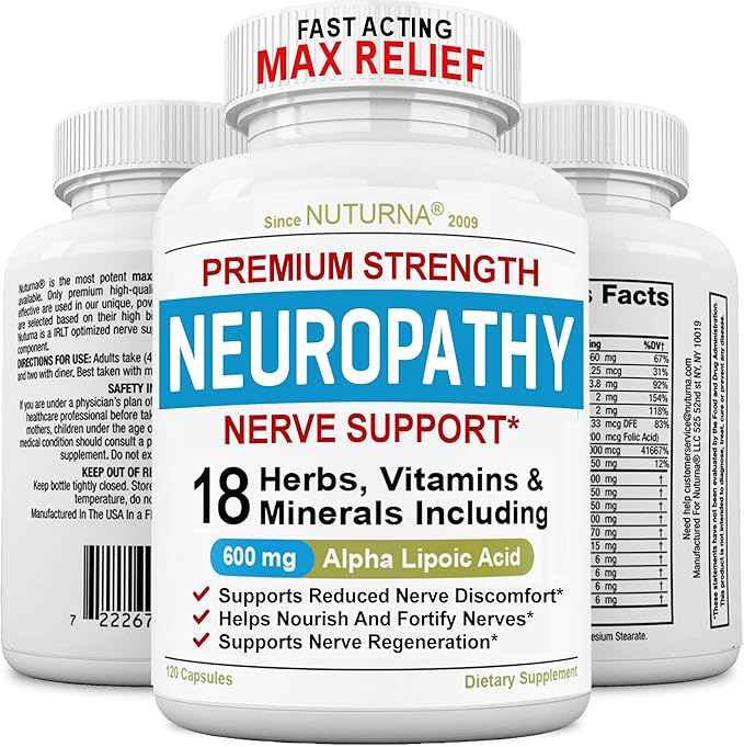- ✅ Neuropathy Support Nerve Supplement with 600 mg Pure Alpha Lipoic Acid - Maximum Strength Formula, Fortify Nerves in Fingers, Hands, Toes, & Feet - Best Peripheral Relief Support - 120 Capsules