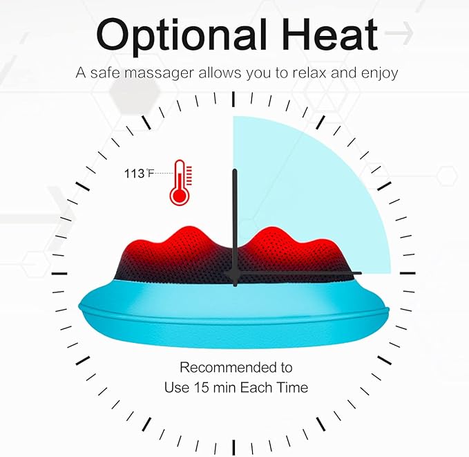- ❥ADJUSTABLE STRAPS: We consider the convenience when you using neck massager, we design massage pillow with strap, so you can fix it in any place you want. During the massage, you can move it to provide you the most comforting position or point of impact. The three-layer premium breathable mesh and superior PU leather, easy to disperse heat and more comfortable. It is a great gift idea for friend and family that you care