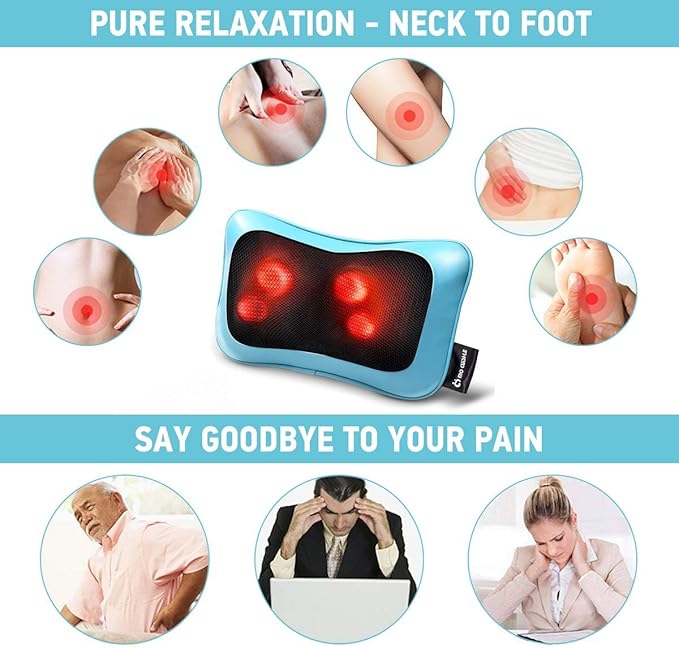 - ❥SUITABLE FOR FULL BODY: We’re always concerned about the health and well-being of you and your family. Body massager mimicking the vigorous deep kneading and penetration of a real massage therapist hands works all over your body, perfect for massaging back, neck, shoulder, belly, calf, thigh, foot. It provide a deep rhythmic massage for relieving your aching, tense and knotted muscles from your neck to your feet