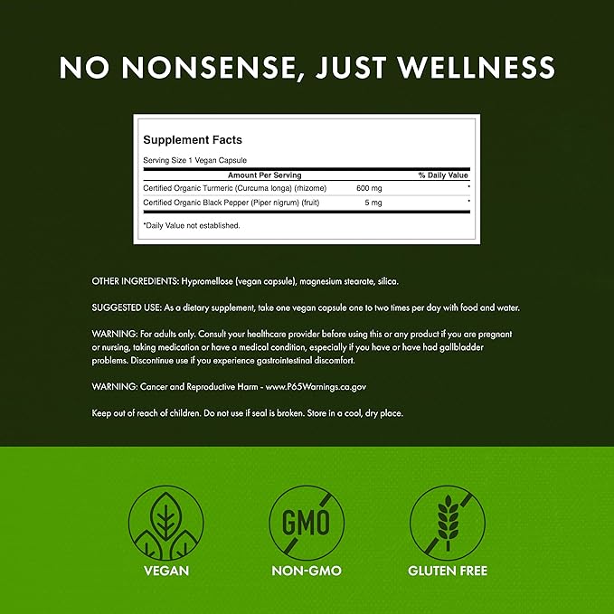 - Premium Plant Formula: The joint health supplement is a full spectrum formula with organic turmeric and organic black pepper for a quality supplement