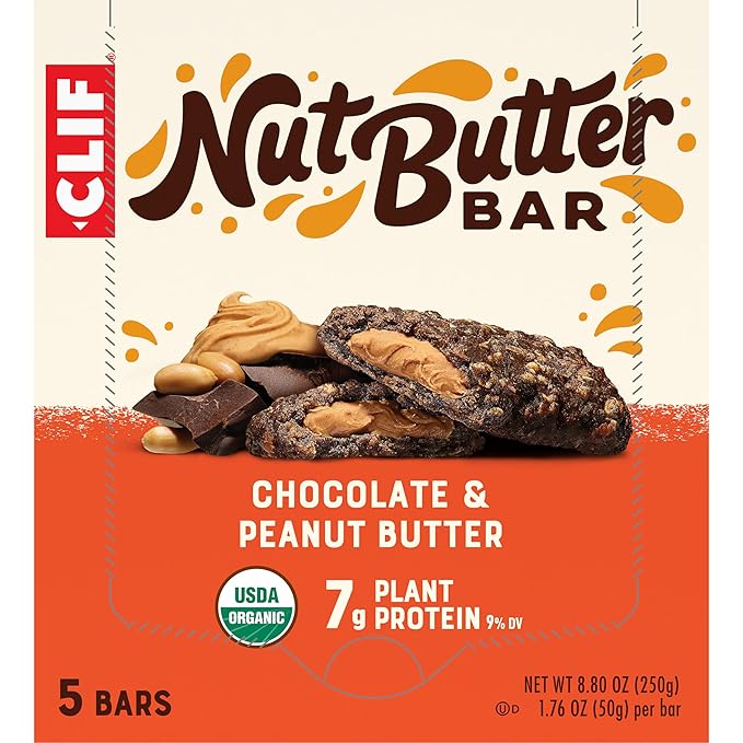 CLIF Nut Butter Bar - Chocolate Peanut Butter - Filled Energy Bars - Non-GMO - USDA Organic - Plant-Based - Low Glycemic - 1.76 oz. (5 Pack)