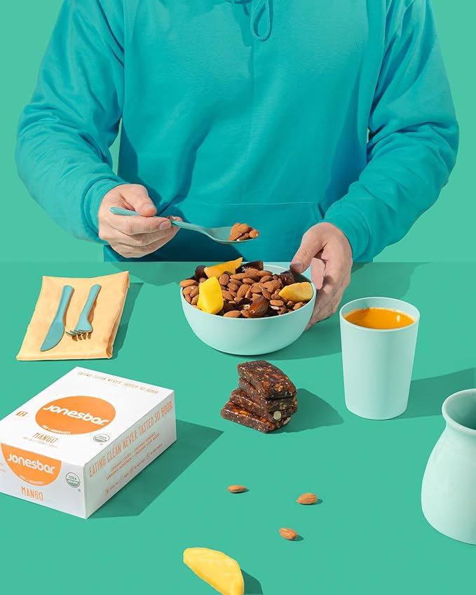 JONESBAR (Mango Almond, 12 Count (Pack of 1)) USDA Organic Fruit & Nut Bar, Non-GMO, Kosher, Vegan, Gluten Free, Simple Snack Bar