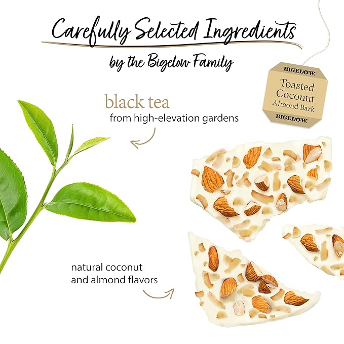 Bigelow Tea Toasted Coconut Almond Bark Black Tea, Caffeinated Tea with Coconut and Almond, 18 Count Box (Pack of 6), 108 Total Tea Bags