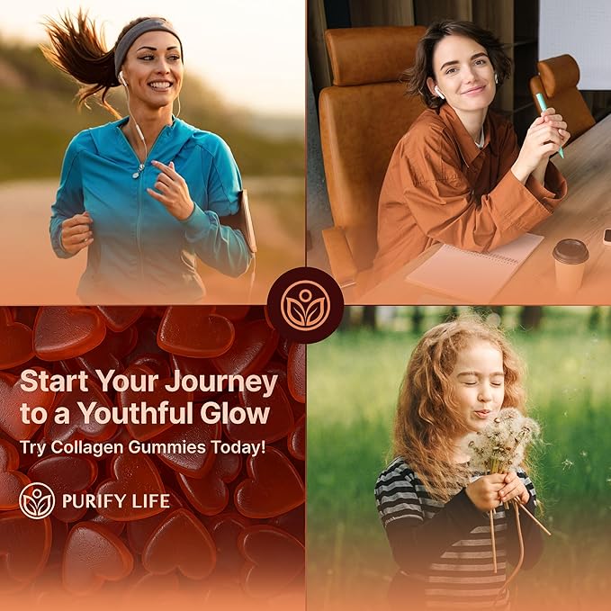 - [Healthy Hair, Skin, Nails]: Rejuvenate the skin and gain a glow with this collagen peptide in your diet, delivering tighter skin and smaller pores. Enjoy healthier hair, stronger nails, glowing skin and youthful complexion with our collagen supplements for women and men. For best results, couple these with our Biotin Gummies by Purify Life.