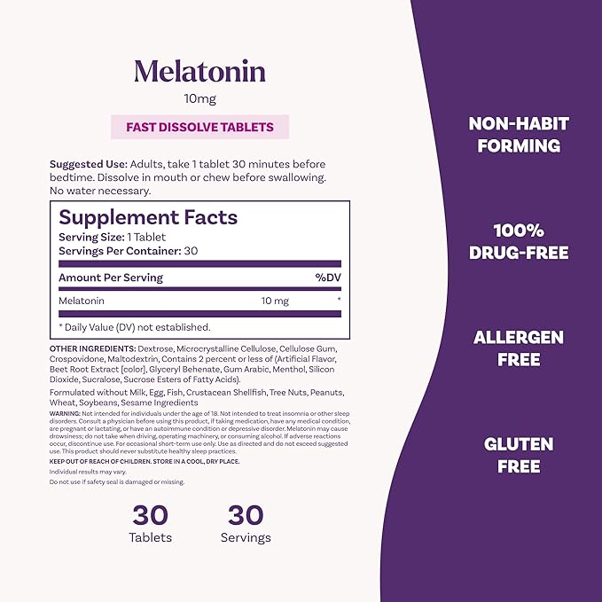 - 100% DRUG-FREE SLEEP AID SUPPLEMENTS: These melatonin 10 mg fast dissolve tablets are 100% drug-free and non-habit forming, and vegetarian