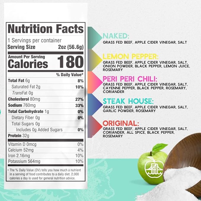 - IRRESISTIBLE FLAVORS YOU’RE SURE TO LOVE - Our biltong beef jerky is marinated in vinegar and spices before being air dried, a process that gives it an incredible steaky flavor, and tender, chewy bite. Other dried beef snacks can be tasteless and stale, but never our beef jerky biltong! Brooklyn Biltong comes in five delectable flavors: Original, Peri-Peri, Steakhouse, Lemon Pepper, and Naked!