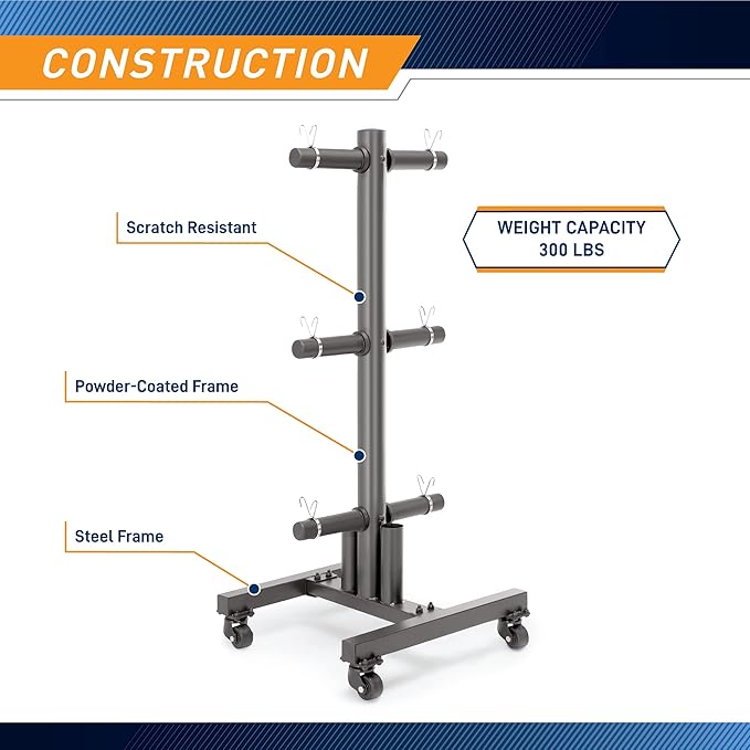 - Heavy-duty gym organizer: keep all your weights secured and organized at all times with this weight storage plate Tree. Made from heavy duty steel, its premium CONSTRUCTION can withstand a weight of up to 300 pounds.