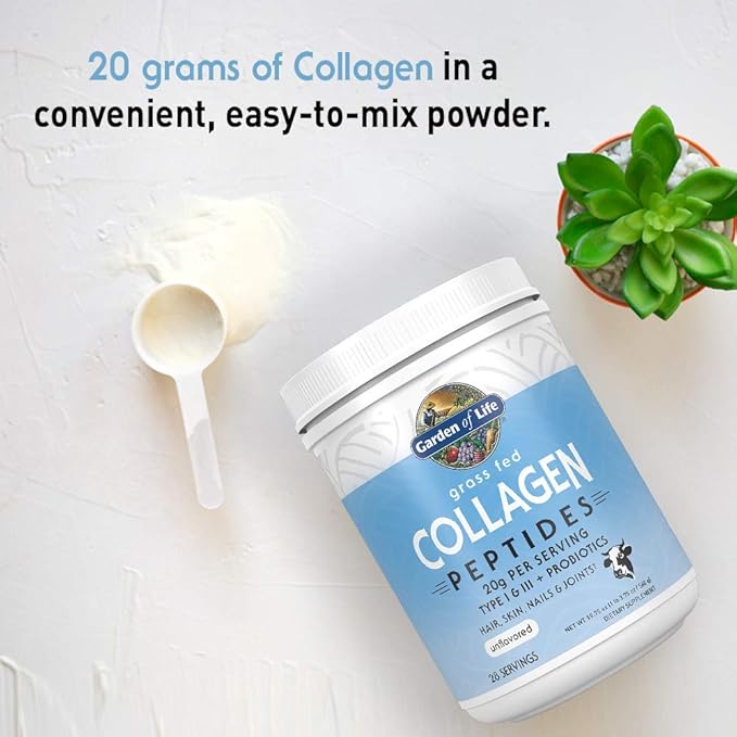 - 20g EASY TO USE COLLAGEN PEPTIDES: Dissolves quickly in hot or cold liquids, from smoothies and coffee to tea and shakes. Conveniently mix a scoop of unflavored collagen powder in water or almond milk for a nutritional boost any time.